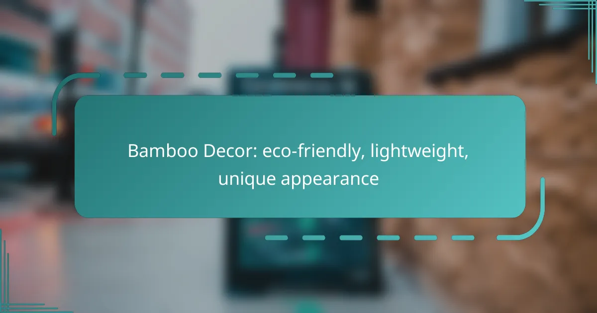 Bamboo decor is an excellent choice for those seeking eco-friendly and lightweight home furnishings that stand out with their unique appearance. Its sustainable nature not only enhances your living space but also supports environmentally conscious practices. With a variety of options available, incorporating bamboo into your decor can elevate your design while being kind to the planet.