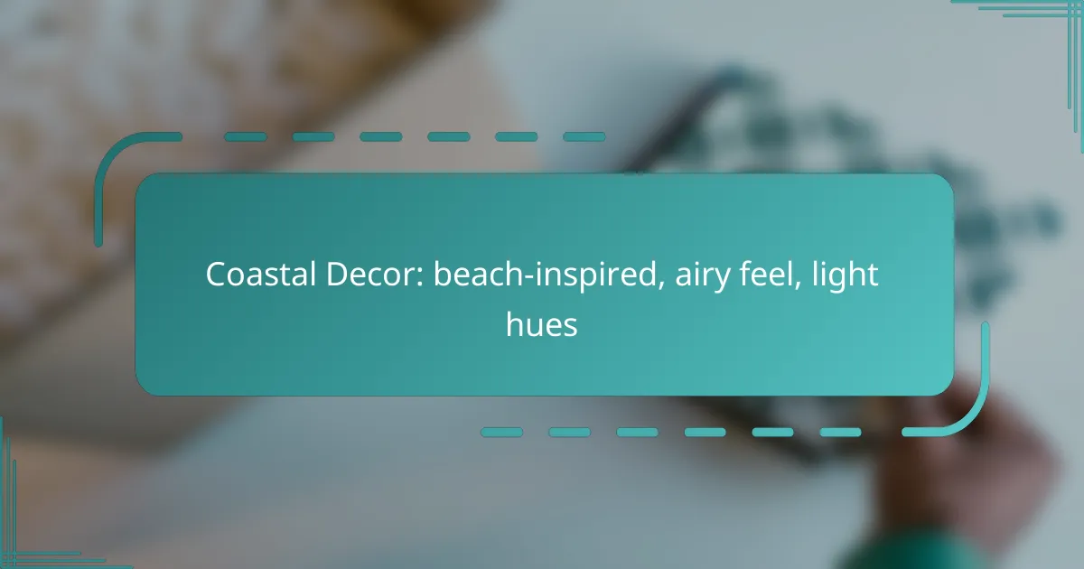 Coastal decor brings the serene essence of the beach into your home, characterized by light hues, natural materials, and airy designs. By incorporating beach-themed accessories and functional furnishings, you can create a relaxed atmosphere that captures the tranquility of seaside living. Embrace this style to transform your space into a refreshing retreat that feels both inviting and breezy.