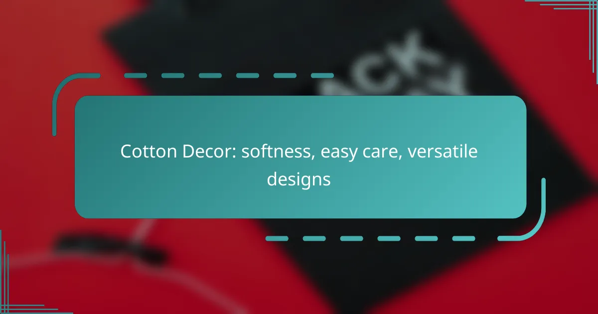 Cotton decor is a favored choice for home furnishings due to its remarkable softness, easy maintenance, and versatile design options. When selecting cotton pieces, consider factors like fabric weight and color to ensure they align with your personal style and lifestyle. With a variety of retailers available, finding the perfect cotton decor to enhance your home’s comfort and aesthetics is both accessible and enjoyable.