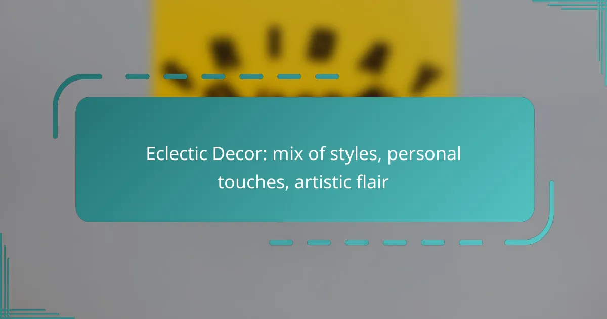 Eclectic decor is defined by its blend of diverse styles and personal elements, creating a unique and visually stimulating environment. This approach allows for artistic expression and the incorporation of various influences, making each space distinctly individual.