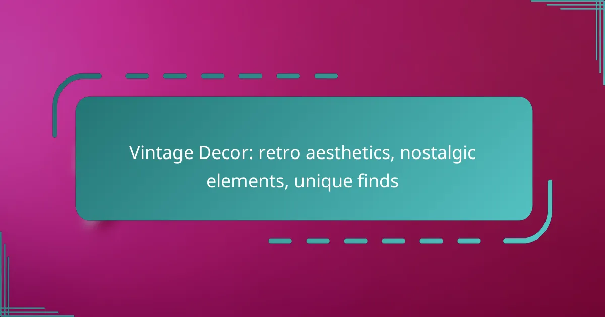 Current trends in vintage decor focus on blending retro aesthetics with modern functionality, emphasizing unique finds that evoke nostalgia. Popular styles include mid-century modern, art deco, and bohemian influences, often characterized by bold colors, eclectic patterns, and distinctive textures.
